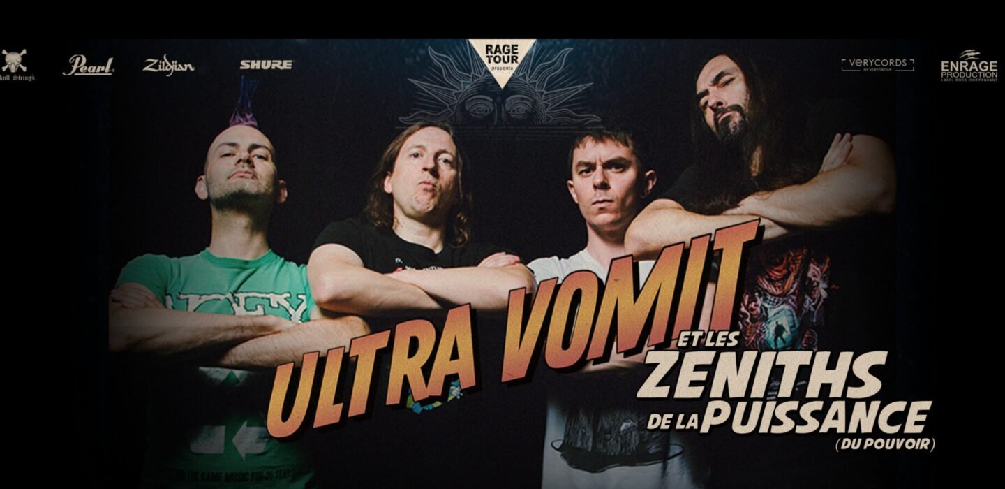 RAGE TOUR est fier de vous annoncer ULTRA VOMIT en concert au Zénith de Strasbourg le 14 mars 2026. Suite à la sortie du dernier album « Le Pouvoir de la Puissance » en septembre 2024, la tournée bat son plein et affiche sold out !